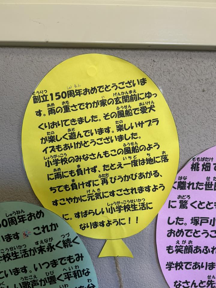 世田谷区立塚戸小学校が150年の歴史のバトンを未来につないで、さらに力強く歩まれますように。