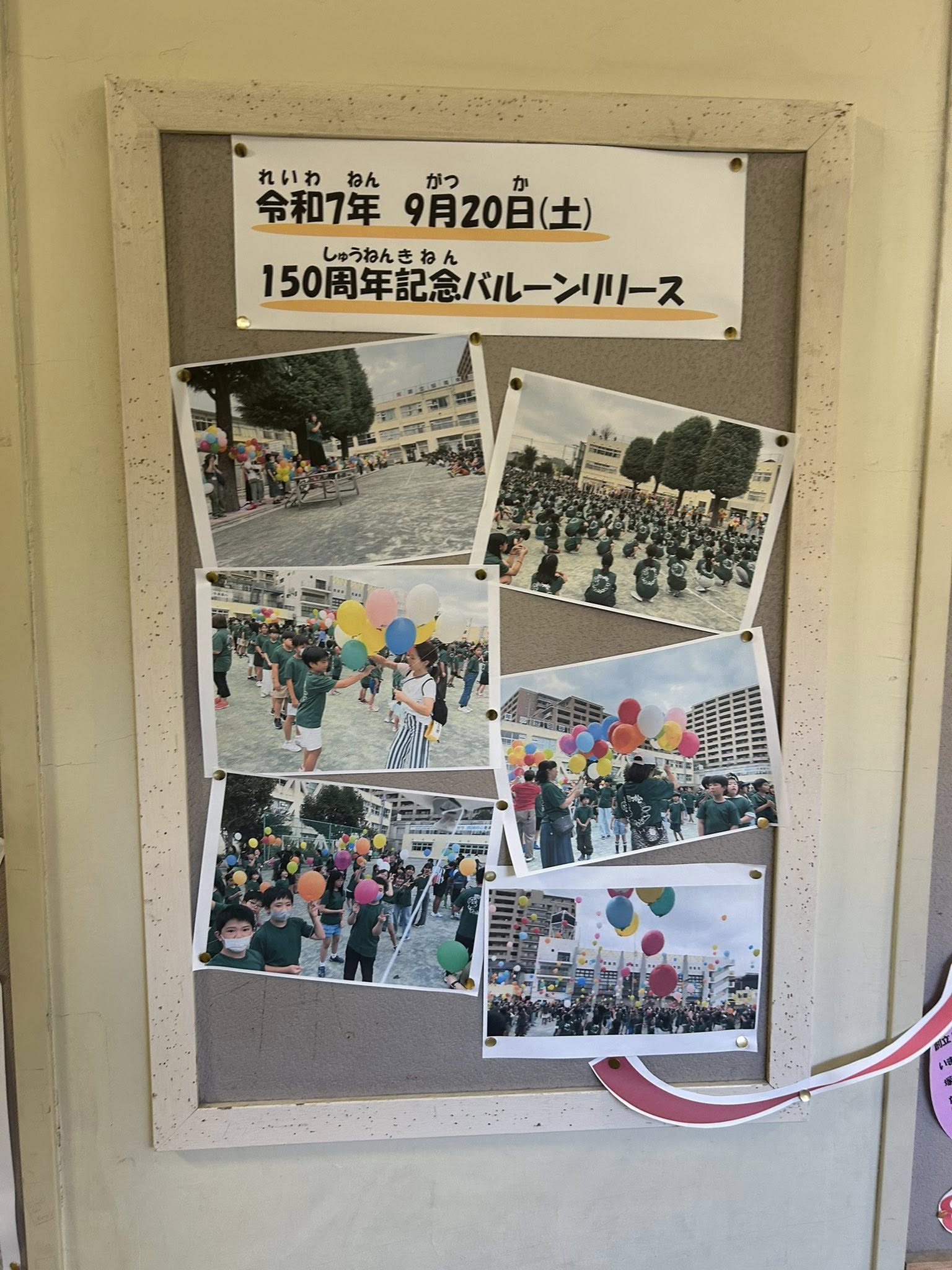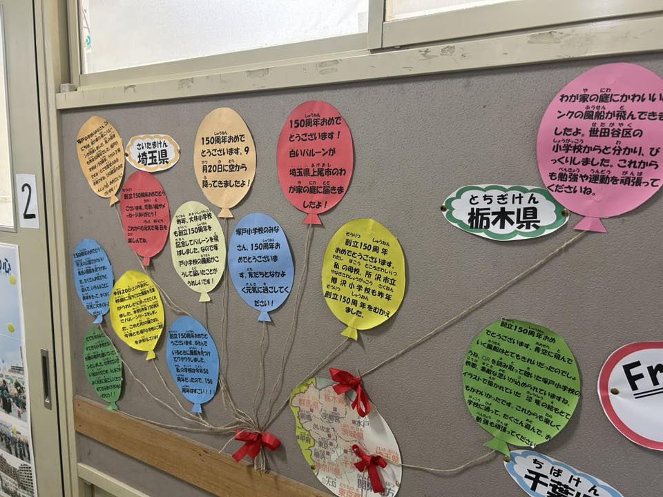 今年9月に子ども達が150年の記念集会で風船を飛ばしたとのこと。
