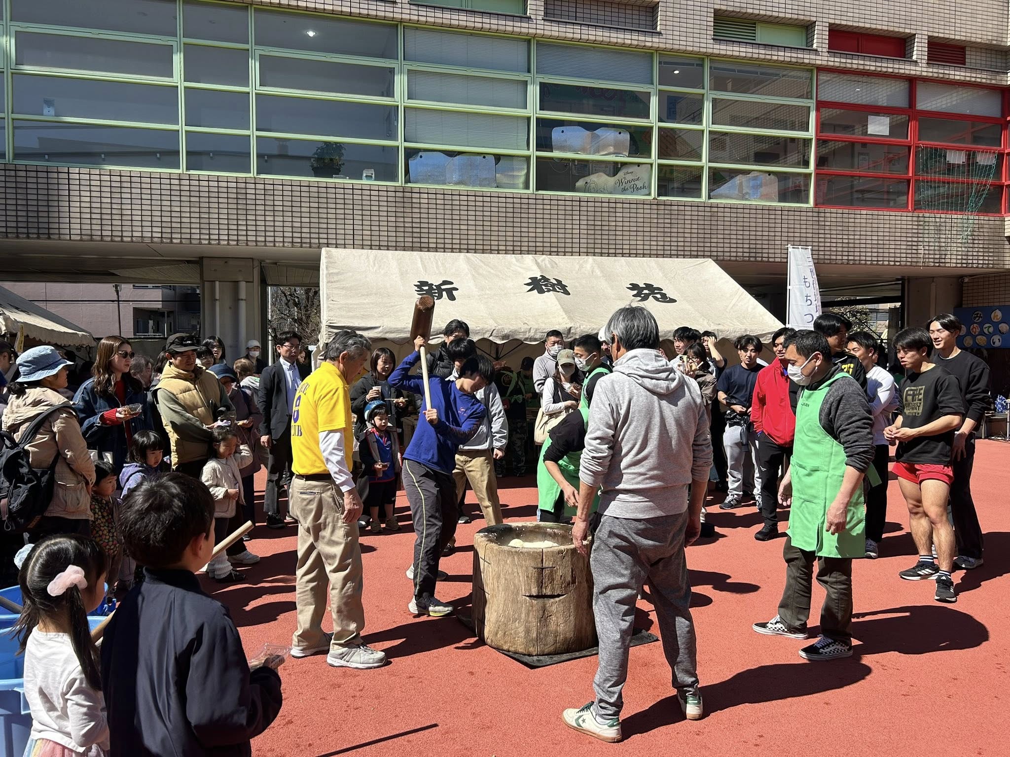 その後、急いで着替えて八幡山の三世代おもちつき大会へ。