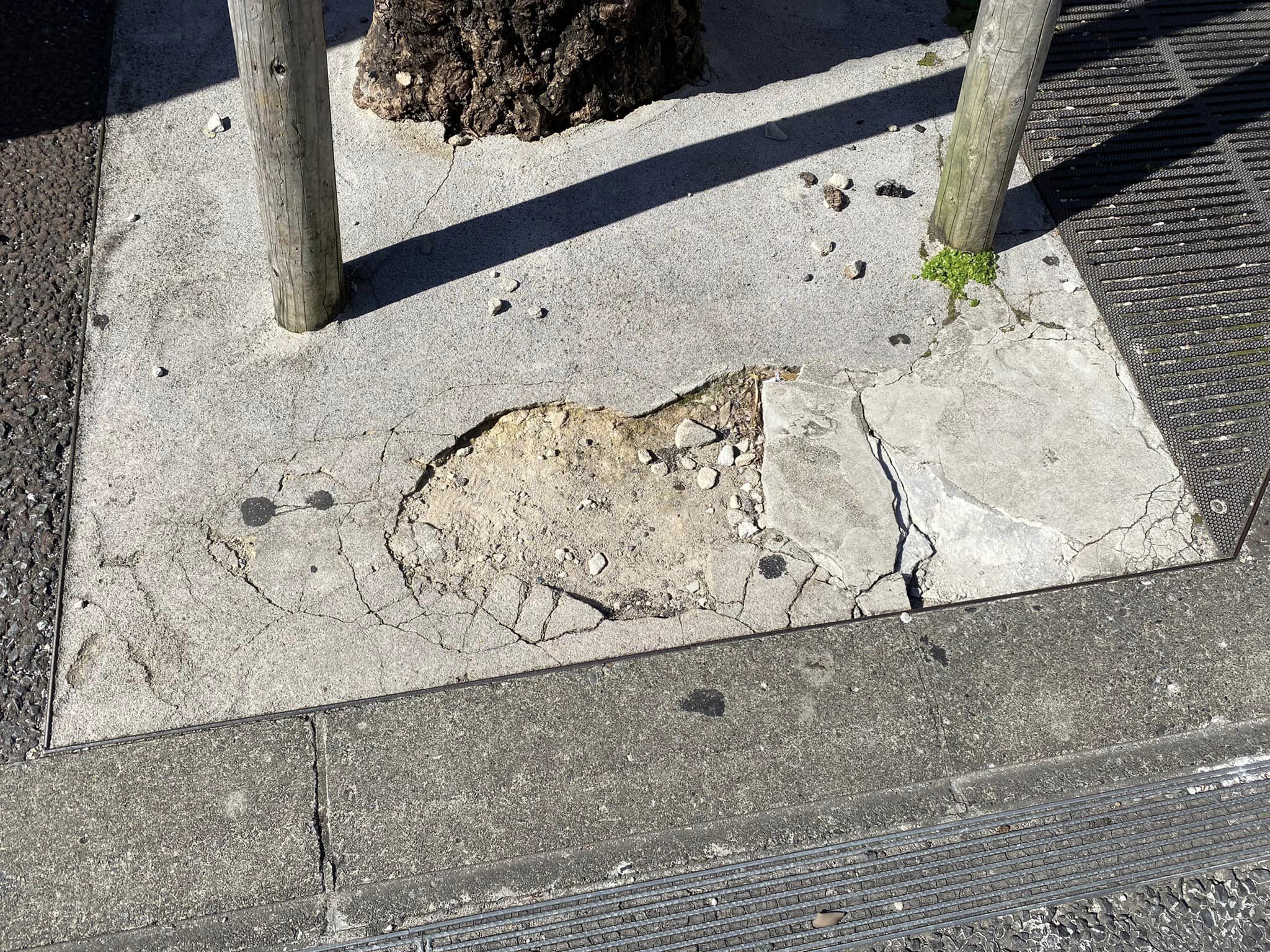 10月最初の日曜日は商店街の清掃活動。ゴミも拾うが情報も拾う!!歩道のコンクリートが剥がれている所を発見! 早速、行政につなげて直してもらいます。 きれいで安全な商店街でのお買い物をして頂きたいですね。