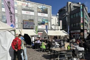 千歳船橋駅前広場で開催された知床らうす物産展(千歳船橋)